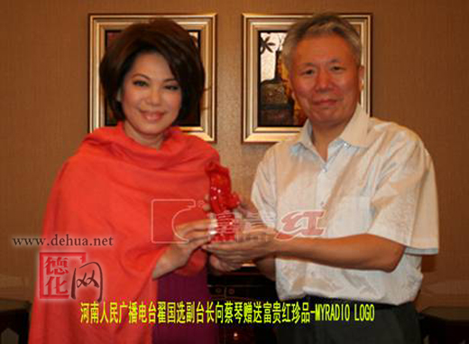 最后,蔡琴手执富贵红陶瓷艺术品向全场热情观众致意。
