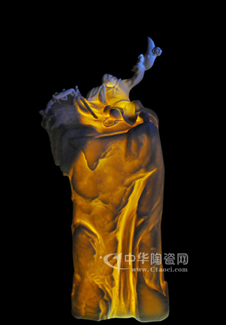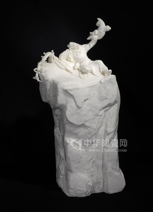 瓷塑作品《月下独酌》有感于李白诗意,表现手法夸张、抽象。
