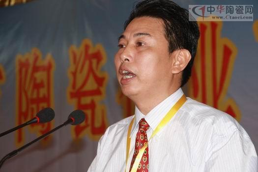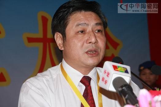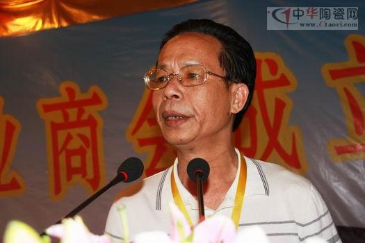新当选的恩平市陶瓷行业商会第一届理事会会长叶荣崧会上讲话。