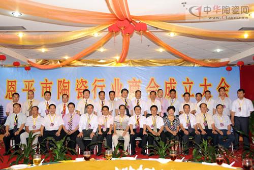 恩平市陶瓷行业商会成立大会暨第一届理事就职典礼由市政协副主席、恩平市委统战部部长许就才主持。恩平市委统战部副部长、恩平市工商联党组书记吴锐品宣读市陶瓷行业商会第一届理事会会长、副会长、秘书长、理事选举结果。恩平市陶瓷行业商会第一届理事会会长叶荣崧宣布聘任名誉会长、名誉副会长名单。恩平市委书记、恩平市人大常委会主任魏志平为当选的市陶瓷行业商会第一届理事会会长叶荣崧颁发证书。恩平市委副书记、恩平市长李灼冰为当选的市陶瓷行业商会第一届理事会副会长陈耀强、罗锦堂、吴锦强、冼伟泰、陈廷创、罗景桥颁发证书。市委副书记卢国壮为当选的市陶瓷行业商会第一届理事会秘书长梁伟文、副秘书长黄钊华颁发证书。恩平市陶瓷行业商会第一届理事会会长叶荣崧为名誉会长魏志平,名誉副会长卢国壮、许就才、冯锡培、吴锐品、罗帜雄、禤活源颁发聘书。恩平市工商联(总商会)主席张活林代表市工商联(总商会)向市陶瓷行业商会颁授牌匾,恩平市陶瓷行业商会第一届理事会会长叶荣崧代表市陶瓷行业商会接受牌匾。新当选的市陶瓷行业商会第一届理事会会长叶荣崧,恩平市委书记、恩平市人大常委会主任魏志平分别在会上作了讲话。