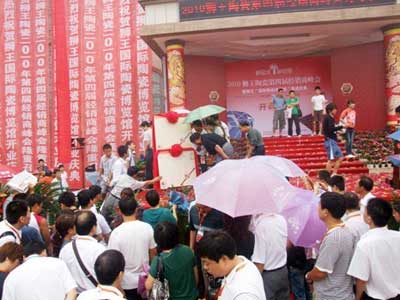 在市委常委、市委秘书长林建宁宣布“2010狮王陶瓷第四届全国经销商峰会”正式启动之后,与会嘉宾又共同见证了狮王国际陶瓷博览馆开馆。