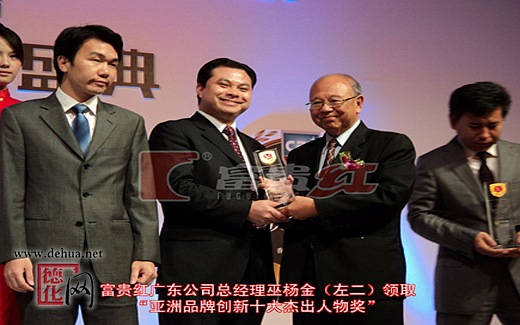 据悉,本次有数家福建省的企业入围获奖,其中来自中瓷都&<2539;德化的陶瓷工艺品研发制作企业福建省富贵红文化发展有限公司获得二个奖项:富贵红品牌创始人徐少东获“亚洲品牌创新十大杰出人物”,福建省富贵红文化发展有限公司获“中国(行业)十大创新品牌奖”。