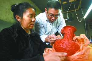 最让夫妇俩自豪的是,他们的一件瓶高近一米,全身雕满牡丹的脱胎漆器“富贵吉祥”大花瓶,被深圳市政府看中,以12.8万元的高价购买,当作珍贵礼物送给外国友人。