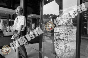 叶竹青身旁的这樽三层通花瓶当年只烧了8只,其中一件已作为国礼瓷赠送给朝鲜领导人金正日。信息时报记者 陈文杰 摄