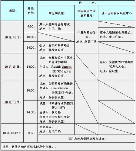 第十六届中国[佛山]国际陶瓷及卫浴博览交易会活动列表