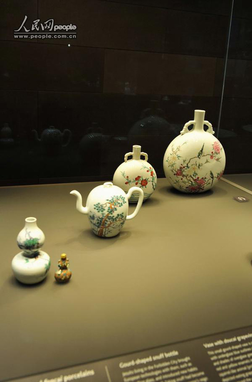 大英博物馆中国馆馆藏的清粉彩花鸟扁壶 摄影:于世文