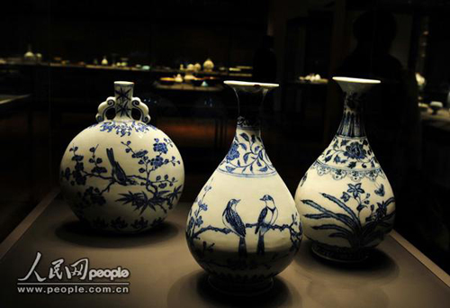 大英博物馆中国馆馆藏的明清蝶鸟青花瓷瓶。 摄影:于世文