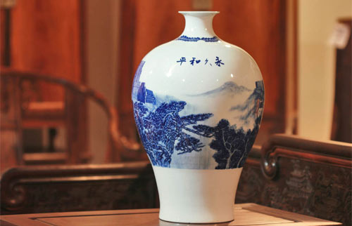 历时3年,由中国瓷坛泰斗、中国工艺美术大师:王锡良、王恩怀、熊钢如三人联手绘制,中国国家博物馆权威监制、中国宋庆龄基金会发行、江西省陶瓷工业公司国家用瓷办公室及景德镇珠山画院联合出品的,建国以来首件青花大作——“永久和平”国礼青花珍藏梅瓶,自2008年5月首次向社会公众正式限量展示发行以来,受到陶瓷鉴赏家、收藏专家、学者以及广大陶瓷收藏爱好者的热情推崇,并在全国各大城市掀起2008年青花收藏热潮,800件配额很短时间内几乎被抢定一空。日前,从景德镇江西陶瓷工业公司国家用瓷办公室传来消息,1月20日起,国礼青花瓷价格将正式上调8000元。笔者了解到,目前全国保留配额已经不足20件。