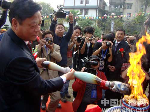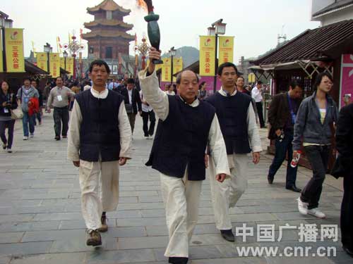 一名老窑工在两名窑工的陪伴下走进佑陶灵祠内采集火种,之后将火种交与景德镇副市长卢正大点燃了圣火。圣火火炬被再次分成几把交与圣火队开始了从御窑场到中国瓷园“瓷业三圣“公祭仪式的接力长跑。景德镇沿途圣火接力队所经之处受到了市民们的热烈欢迎。