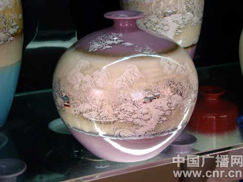 四年过去了,2010年,记者第三次参加景德镇国际陶瓷博览会,在闲暇之余再次来到了这家小店,店内展示的产品已霍然一新,不仅出现了不少新的造型别致的观赏瓶,而且器形、釉色看起来特别鲜艳和亮丽,经询问才得知,原来这是在以前结晶釉类型产品的基础上推出的宝石釉与窑变相结合的装饰类陶瓷新品。