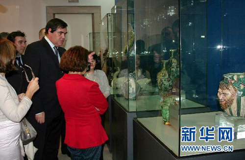 2010年10月20日 19世纪葡萄牙瓷器精品展开幕 10月19日,观众在葡萄牙里斯本瓷砖博物馆欣赏展出的精品瓷器。当晚,葡萄牙19世纪瓷器精品展在里斯本瓷砖博物馆开幕,共展出178件19世纪后期烧制的各类精品瓷器。葡萄牙人钟爱瓷器,这里的瓷器烧制已有数百年历史。(记者童炳强)