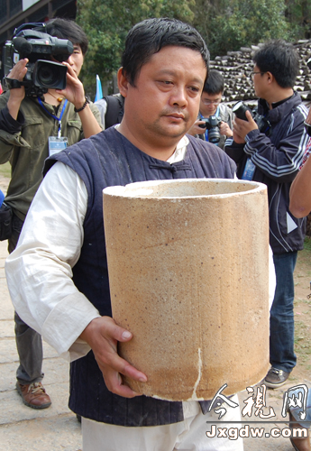 专家现场点评古窑烧制出的陶瓷。