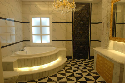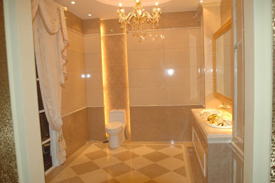 从踏入新展厅一瞬间,人们就轻易感受到展厅的巴洛克气息。绚丽的水晶灯,闪亮的瓷砖,在光与线流动中绽放奢华的姿态,却又能让人体会到一丝丝的浪漫主义。早在16世纪下半期在意大利诞生的巴洛克,经过近五百年的洗礼,仍被人们所推崇,广泛沿用于建筑、服装、家居装饰等。全新面貌的一楼展厅巧妙运用巴洛克经典元素,如吊灯、罗马立柱、壁炉、弧形橱窗、雕塑及油画,强调建筑绘画与雕塑以及室内环境等的综合性,突出浪漫与激情。展厅处处流露高贵典雅,辉煌奢华,将现代人居空间进行了很好地体现和创新。在300多平方米的空间里,多款产品陈列其中,通过巴洛克风格的烘托和营造,经典与现代完美的交融,赋予了产品丰富的文化内涵。