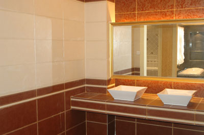 展厅的另一头,个性与温馨的赛德斯邦皮•魅影系列,无疑成为整个展厅中另一道美丽的风景线,其质感和肌理与真实皮革无异。皮•魅影样板间以暖色调为主,华丽的家具和柔美的壁画,几何图案的皮纹组合处处洋溢着个性、典雅的奢华内涵。同时,在全新的展示空间里,极具特色的蓓卡系列作为背景元素墙穿插于各个空间里,形成了很好的点缀和统一的效果。在这里,通过对巴洛克风格的全新演绎,赛德斯邦陶瓷资源整合的理念得到了升华,“让世界重新想象”的品牌理念得到了更新跨越。