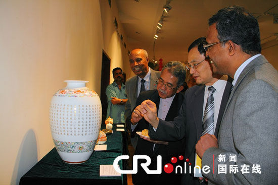 “中国节”系列文化活动之陶瓷精品展26日晚在印度首都新德里的国家美术馆举行,来自中国瓷都景德镇的精美瓷器博得在场印度各界观众的一致赞赏。