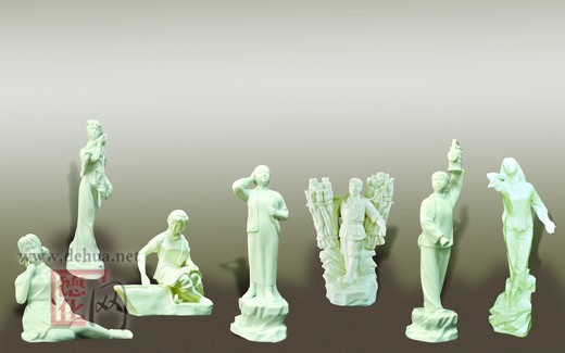 潘丁亮收藏的苏勤明创作、高22 厘米的《李铁梅》,高约20厘米的《江姐》;陈德卿创作的27厘米高的《赤脚医生》;陈明良收藏的高25厘米的《张思德》;以及由郑永宁收藏的《白毛女》、22.6厘米高的《田头会计》等;还有陈其泰创作的14厘米高的《知青读毛选》,都堪称是那个时代瓷雕的代表性作品。