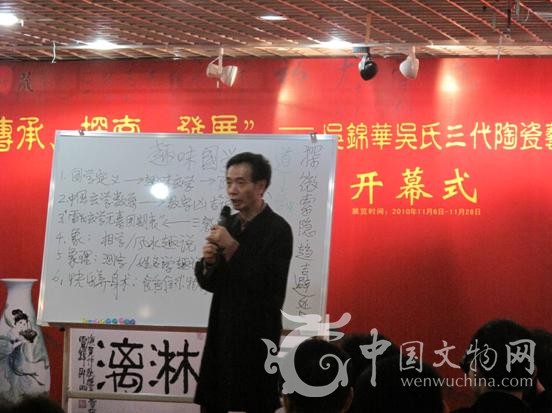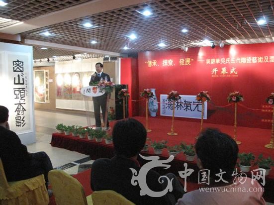 11月6日下午3时“传承 探索 发展” 吴康、吴锦华、吴凌之三代陶瓷艺术及雷铎书画作品赏评展在藏乐阁当代名家陶瓷艺术馆隆重开幕,市、区不少领导参加了此次活动的开幕式,分别有中共福田区委宣传部部长王强;深圳市福田区文化产业发展办公室主任林延岳;深圳市工艺美术行业协会会长廉建利;深圳市工艺美术行业协会秘书长麦庆照;世纪工艺品文化市场有限公司副总经理杜亚曦等等。