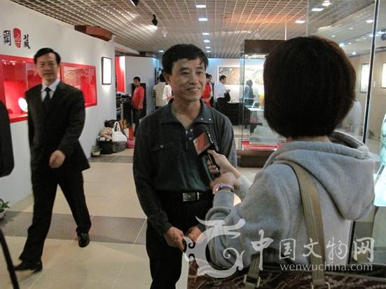 中国工艺美术大师吴锦华接受电视台《第一现场》栏目组的采访。