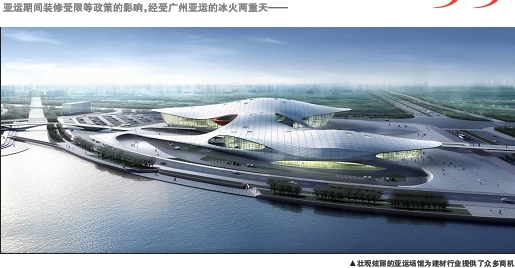每逢重大体育赛事,特别是世界级体育赛事,都会让现代企业趋之若鹜,绞尽脑汁以参与其中。2008年北京奥运会,让许多建材企业名利双收。广州亚运会自2004年申办成功后,投入了大量经费用于场馆、市政建设,建材企业颇为受益,特别是“近水楼台”的佛山陶瓷,成为许多亚运工程的陶瓷提供商,众多陶企展开声势浩大的“亚运营销”。在许多企业尽情享受亚运工程带来的丰厚收益的同时,也受到了广州亚运会临举办之际因环境治理、关停污染企业、亚运期间装修受限等政策的影响,经受广州亚运的冰火两重天——