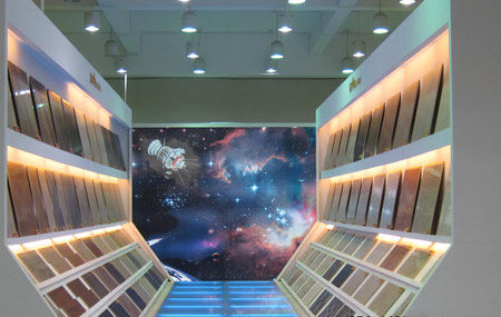 苏振明 :美国是全球最大的仿古砖消费市场,作为美国独资公司,奥特玛陶瓷在产品的质量和外观方面的要求是国内最领先的,我们每年都会参加世界各地的陶瓷展会,譬如西班牙瓦伦西亚展、美国奥兰多石材陶瓷展、意大利博洛尼亚等知名展会,通过展会的观摩、学习,在花色、款式方面引进一些国际领先的设计理念,经过我们来自意大利、美国、中国的设计团队合力开发,保证我们的每块瓷砖在质感和纹路始终保持国际领先水平,截止目前,我们已开发出25个系列产品,分为自然类、典雅类、时尚类,涵盖全抛釉、金属釉、半抛釉和木纹砖等在内的近千款仿古砖。