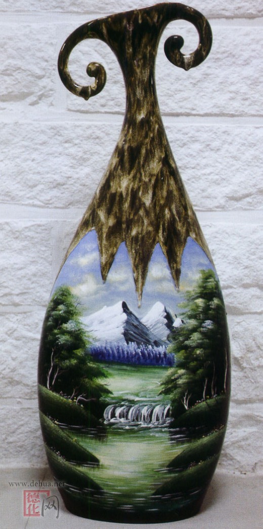 瓷器表面使用特殊处理后,交由画家手工绘制上鲜艳的油画作品,以画装点瓷器,使德化瓷产生这种中西合璧、古今混搭的装饰风格。