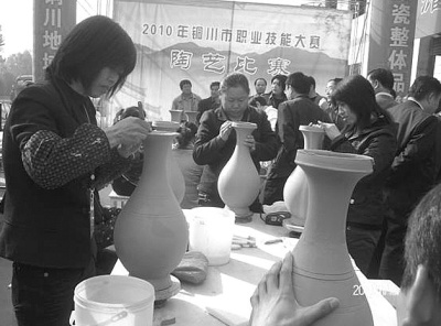 为了进一步弘扬地域文化,打造和宣传耀州陶瓷的整体品牌,使优秀陶瓷技能人才脱颖而出,激励和引导广大陶瓷职工钻研技术,11月10日上午,在著名的耀州瓷发源地——铜川市耀州区董家河镇举办了一次别开生面的“铜川市职业技能大赛陶艺比赛”。(记者 吴穹 张红娟)