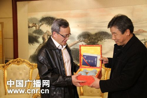 11月14日,河南省委书记、省人大常委会主任卢展工在郑州亲切会见了香港华懋基金会主席龚仁心一行,并将一件汝瓷中华和瓶作为礼品赠送给了香港华懋基金会主席龚仁心。