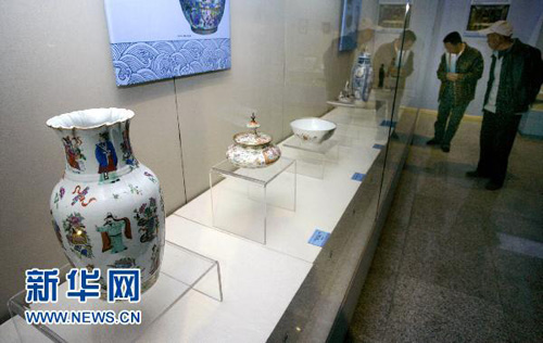 11月16日,参观者在参观展出的文物。当日,从广州博物馆引进的《海贸遗珍———古代广州外销艺术品展》在新疆博物馆亮相。这次展出的99件(套)文物是十八、十九世纪海路贸易的外销商品或舶来品,包括陶瓷、丝绸、珠饰、象牙雕刻制品等。此次展出将持续到2011年2月。