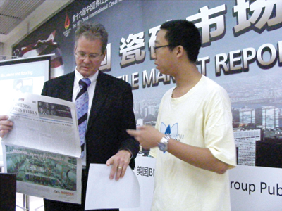 10月20日早上,由美国BNP传媒发行人菲尔-约翰逊先生 (PhilJohnson)主讲的“美国瓷砖市场报告”在中国陶瓷城五楼会议室召开。到场听众有来自各陶瓷品牌的厂家、经销商、零售商,以及普通的买家和媒体人士。