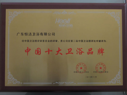 恒洁卫浴荣获第二届中国卫浴榜“中国十大卫浴品牌”
