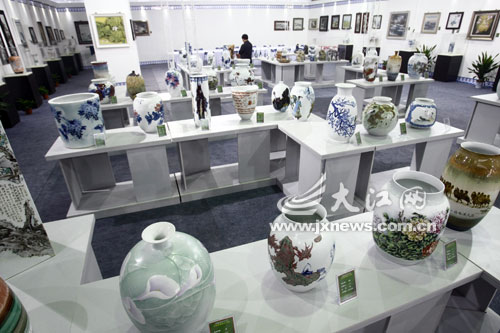 陶瓷文化馆里展示的景德镇陶瓷作品。