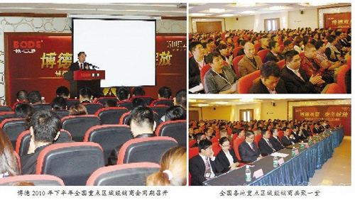 籍本次博德双星展厅奢装启动之际,“博德2010年下半年全国重点区域经销商会”亦同期举行,各地重点区域经销商共聚一堂,在为2010年最后几个月的销售冲刺鼓劲加油,力求交上一份最完美的答卷的同时,也为2011年的销售规划出谋划策。