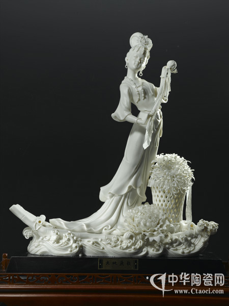 瓷塑《大地飞歌》被指定为2008年中国—东盟博览会国礼,并载入东盟史册,其作品灵感源自广西“歌仙”刘三姐,她是智慧与才华、爱与美的象征,将广西文化和德化的瓷器文化完美地融合在一起,悠悠漓江水载着美丽的刘三姐和绽放的菊花与牡丹花,把刘三姐塑造得清秀俊逸、超凡脱俗。