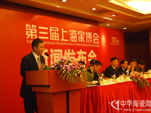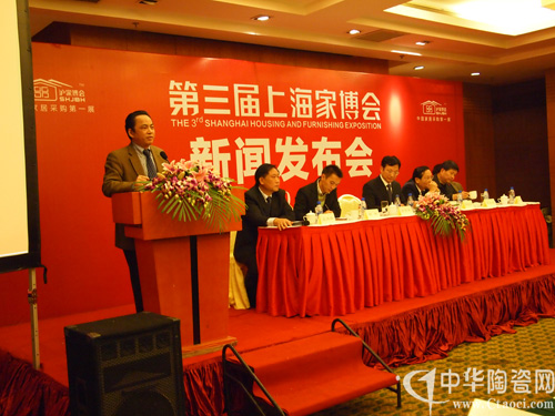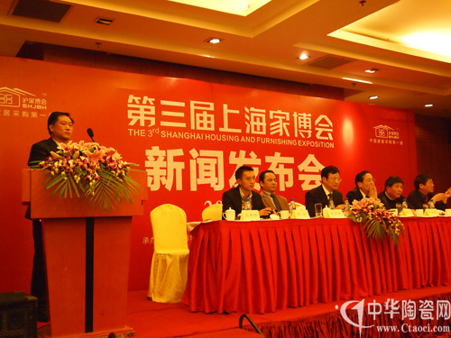 2010年12月7日,“第三届上海家博会”新闻发布会在光大国际大酒店隆重举行,上海商务委贸促处处长蒋雪根、上海装饰装修行业协会常务副秘书长郏祥均、上海家博会组委会主任茅万青、上海市装饰装修行业协会材料委员会秘书长应再扬、家博会承办单位上海华墨展览服务有限公司总经理王国平等出席了新闻发布会。另有来自上海市前30强知名家装公司、200多家品牌建材家居企业、数十家行业权威媒体的300多名代表参加了新闻发布会。