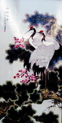 珠山八友的一幅松鹤图瓷板画近日在南昌展出时受到藏家追捧
