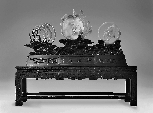 玉雕作品《日月同辉》售价2亿元,是3件一套的作品,原料出自一块62cm×62cm×9cm的黄龙玉原石上,为当今黄龙玉石雕刻一绝。牙雕作品《盛世乾坤》从设计制作到完成,耗时20年。其主体巨龙喷出水柱衬托起龙珠(57层象牙球),最为珍贵的57层象牙球直径17厘米,每层薄如丝纸,且均为镂空雕刻,层层可转动。制作象牙球的材料是一支珍藏上百年的非洲象牙,重80公斤。