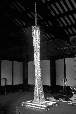 利用废旧铁线(丝)、铁皮,经扭曲、裁割、粘合成的《广州塔》,高2.1米,则表达了民间艺人对广州亚运会的关注和热爱。