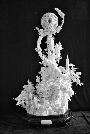牙雕《盛世乾坤》取材是一支有上百年历史,重80公斤的非洲象牙。