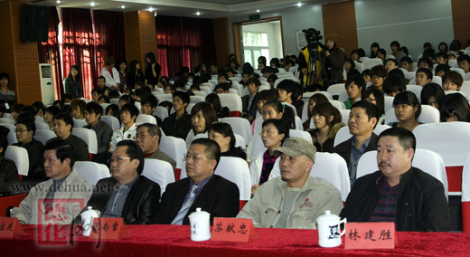 聘请仪式结束后,张南章先生应邀作题为《青花瓷——体验中国古典之美》的专题讲座,从“青花之魅、青花之源、青花之脉、青花之美、青花之魂”等五个方面为在座的校领导与美术系师生阐述了青花瓷的渊源与魅力,精彩的讲座博得了现场阵阵热烈的掌声。