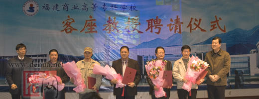 11月26日下午,福建商业高等专科学校在学术报告厅隆重举行客座教授聘请仪式,聘请郑修钤、黄宝庆、张南章、苏献忠、林建胜五位专家为商业美术系客座教授。校长黄克安教授代表学校致辞,邀请五位专家出任商业美术系的客座教授。党委书记林彬向郑修钤等五位先生颁发了福建商业高等专科学校客座教授证书。副校长吴贵明主持聘请仪式。
