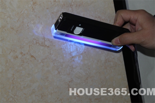 杨总:王者陶瓷工厂和国际著名的大学进行科技合作,在陶瓷上引入了高科技的材料,使我们的砖对细菌有一定的杀伤力,给我们老百姓的身体,尤其是家里有老人和小孩的,是有相当大的好处的。同时,我们在2008年率先在全国推出了防伪标志。我们是考虑几个问题,首先市场上瓷砖的同质化趋向明显,有些砖看上去差不多,其实是已经掉包过了,消费者在很大程度由于商家的不文明经商行为受到损害。王者陶瓷每片砖上都有防伪标志,客户买回去以后,只需要拿紫外线的灯照一下,立刻能够发现是否与购买的瓷砖一致,从而保证消费者的利益。