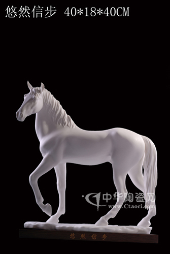 “瓷坛马王”林建全刻画的瓷塑作品《悠然信步》,着重抓住马轻松悠闲的状态,构图和谐、自然,马之动作曼妙、迷人,犹如漫步云际。