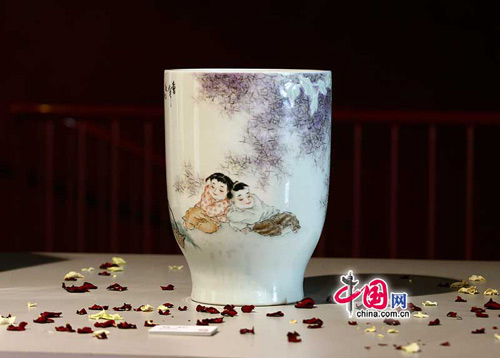 中国收藏2010十大艺术陶瓷名品展上的精美作品。童年(博梦堂 摄影报道)
