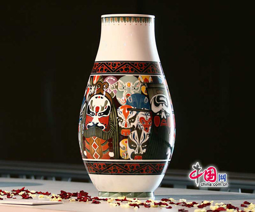 中国收藏2010十大艺术陶瓷名品展上的精美作品。样板戏(博梦堂 摄影报道)