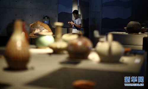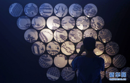 一名参观者在莺歌镇的陶瓷博物馆里欣赏陶瓷展品。