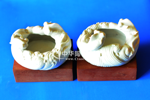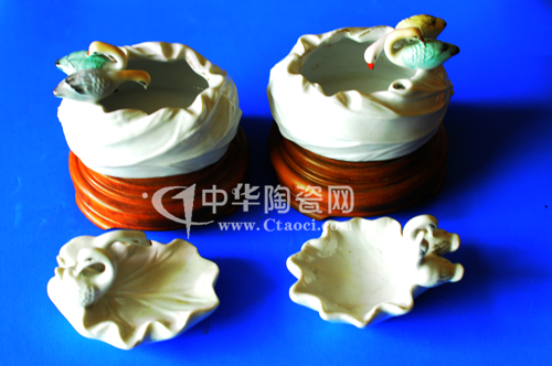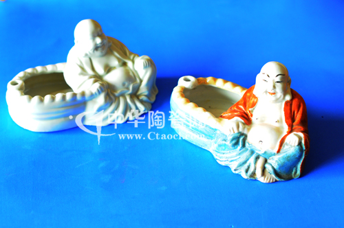 德化瓷器以如脂似玉的质感和栩栩如生的雕塑艺术名扬四海,独步世界瓷林。当然,作为家居客厅的案桌或茶几上几乎必备的陶瓷烟灰缸,自然也彰显着德化瓷那特殊的艺术语言。自从清末以来,我国市民抽烟群体越来越庞大,烟灰缸便取代了鼻烟壶,不但大量生产,而且像鼻烟壶一样,瓷艺师千方百计、匠心独具、巧妙构思、精雕细刻,赋以生动活泼的艺术生命。童老师说:“特别是德化瓷雕烟灰缸,各种典雅瓷质的玉‘白’和多姿多彩的艺‘雕’,都得到充分的发挥,可以说,近现代德化瓷艺的发展与成就,从这些瓷雕烟灰缸系列中,都可窥视到她的身影。”