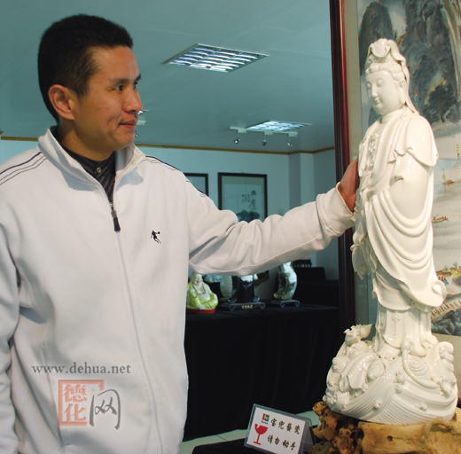 “我现在藏有德化近代名家作品有数百件,另外还有上百件上世纪德化厂集体创作的各类作品,这些作品的时间横跨半个世纪。可以说是见证了新中国成立后,德化瓷雕艺人的创作历程。所以,在我展厅里,精品荟萃,也是德化当代瓷艺作品的集中展示。” 在德化进城大道“德化古玩城”内的主建筑大楼五层,“宝兜艺瓷”的苏银溪在接受记者采访时如是说。
