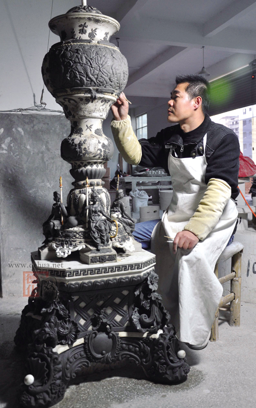 德化瓷国春秋家居连锁有限公司郭总介绍,烧制这款大型瓷灯座除了对窑炉要求高外,还需克服瓷土在高温下容易软化导致支柱变形的难题,因为这款灯座不只是简单的直形圆柱,而是采用手工拼接和新式注浆等成型方法,在烧成后需要烤金、贴花纸等多道工序的反复烧制,成型和烧制工艺相当复杂。