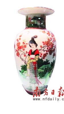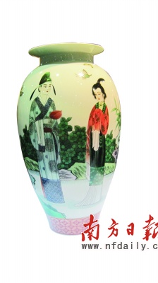 工艺美术大师李文跃为本次展会特地创作了大型粉墨彩瓷板《曲水流觞》,《曲水流觞》取材于王羲之《兰亭集序》,画面中一共48个人物,姿态神情各异,描述了魏晋时期文人雅士随心所欲、放荡不羁的名士风范。作品把墨彩技法和粉彩技法巧妙地融合在一起,相映相衬。据李文跃介绍,粉墨彩结合是陶瓷艺术创作上的一个创新,他们从2000年开始,不断探索实验,目前已经将这种技法运用得相当成熟。和《曲水流觞》一起展出的还有李文跃的高温窑变粉墨彩作品《春风十里丽人行》。这件作品的背景先用1800℃高温烧制以后,再进行主题绘制,然后再用780℃高温烧制。这件作品由于烧制难度较高,李文跃称之“千窑一宝”。