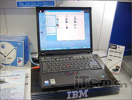 今天给大家介绍的这款机子其实在配置上还不如上面提到的那款售价仅为4999元的TCL K10,但这可是在说IBM,谈配置,外行了吧!这款机子处理器采用的是Celeron-M 350,主频为1.3GHz,芯片组是符合迅驰标准的Intel 855GME + ICH4-M,内存方面IBM 为它搭配了256M DDR333,基本能满足大部分日常需要,不过不得不说的是IBM R50e标配硬盘只有 30G,这多少显得有些小气了。外观上,整机屏幕为14.1寸,净重为2.7KG,这些数据都算是中规中矩,不过整机 4.7小时的继航能力还是多少能体现出一点IBM高贵的品质,对于性能要求不高的同学来说,这个黑小子相当合适。而且时值联想大力为IBM造势期间,最近购机的朋友均可用99元的价格获得IBM两年的官方质保,想象一下,两年的蓝快啊,还有什么后顾之忧么?